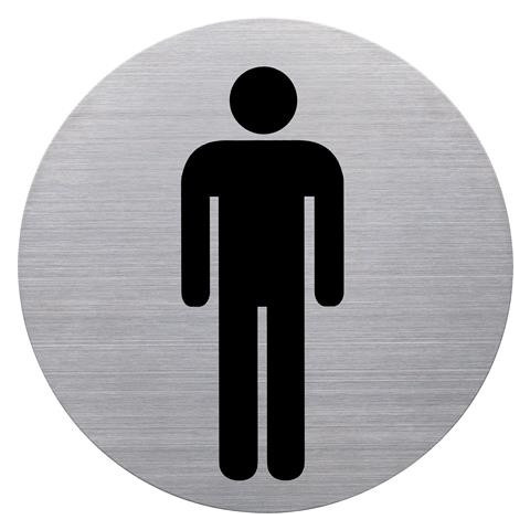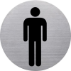 Információs tábla, rozsdamentes acél, HELIT, férfi mosdó - minőségi rozsdamentes acél alapanyag - szálcsiszolt - kör alakú tábla - fekete mintával - kopásálló - hátulja öntapadó - átmérő: 115 mm Gyártó/első EU forgalmazó elérhetősége: helit innovativ