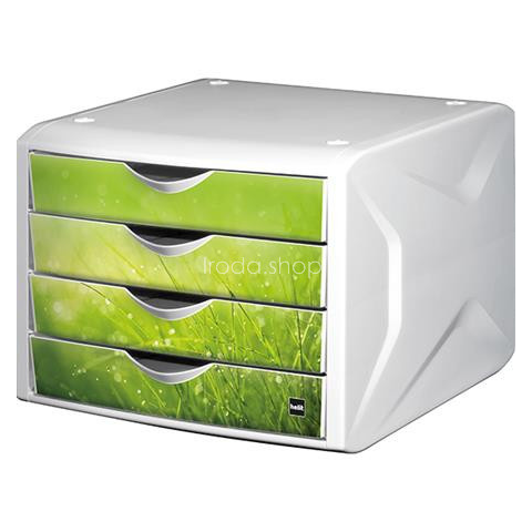 1 kép HELIT Irattároló, műanyag, 4 fiókos, HELIT "Chameleon", fehér-zöld