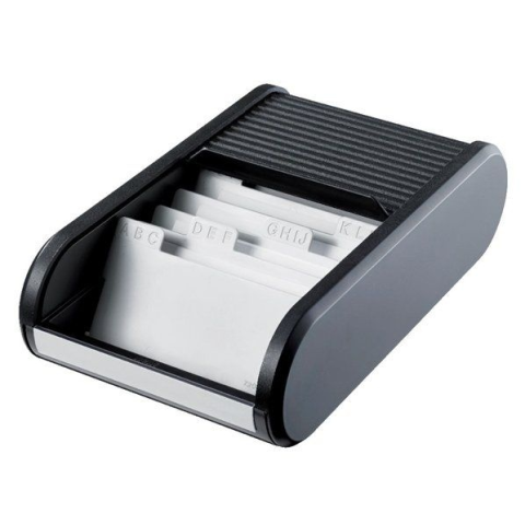 - 300 db névjegykártya tárolására alkalmas - a névjegyek rugalmas elhelyezése - egyszerű, praktikus tárolási mód - a rolós fedél megvédi a névjegykártyákat a szennyeződésektől - maximum 67x102 mm méretű névjegykártya számára - 8 db-os A-Z regiszterrel - f