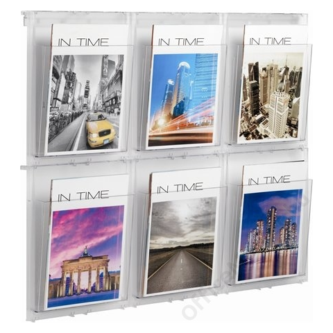 Prospektustartó, fali, A4, 6 rekeszes, HELIT Placativ, átlátszó (INH6812002) - fali prospektustartó 6 db A4-es rekesszel - alumínium sínnel (tartozék) - méretek: 852x652x59 mm - rekesz mélysége: 35 mm - törhetetlen alapanyag, elegáns, áttetsző fényes -