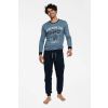 A Burn férfi pizsama nagyon kényelmes, kék színű és érdekes nyomott mintával ellátott. A pizsama 100%-os pamutból készült, ezért kellemes tapintású és légáteresztő. Kék színű, elöl nyomott mintával ellátott. A pizsamapóló kerek nyakkivágású és hosszú ujjú. Az ujjak, a póló alsó része és a nadrágszárak mandzsettákban végződnek. A pizsamanadrág derekában rugalmas gumi található és meghúzható zsinór is. A pizsamát ajándékdobozban kapja kézhez.