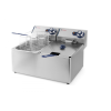 Ház és olaj tartály rozsdamentes acélból készült. Kivehető elem, eltávolítás során kikapcsoló funkcióval. Eltávolítható olaj tartállyal a könnyebb tisztíthatóság érdekében. Jelzőlámpa mutatja, ha a fűtőelem működésben v