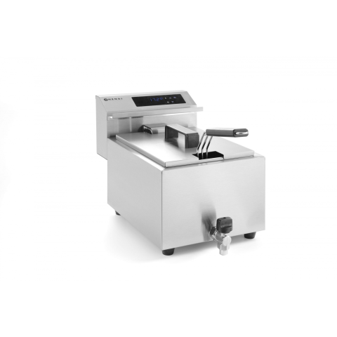 Digitális vezérlőpanel hőmérséklet és időzítő funkcióval.A Profi Line asztali olajsütők 18/0 rozsdamentes acélból készültek. Eltávolítás során kikapcsoló funkcióval ellátva. V-formájú olajtartály fenék