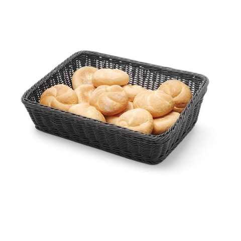 Kenyérkosár - műanyag, fonott, mosogatógépben mosható, mérete 12 × 40 cm (Ma×Sz), fekete kivitel Made of polypropylene. Width: 400mmDepth: 300 mmHeight: 120mm