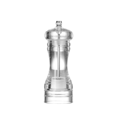 Átlátszó akrilüvegből (PMMA) készült váz – az üveg könnyebb helyettesítője, de ellenállóbb a karcolásokkal és törésekkel szemben. Kerámia csiszolómechanizmus (sorjázó) – nem korrozív (sóhoz alkalmas), kézi és nem állítható. Csavarozott gombbal védett a fe