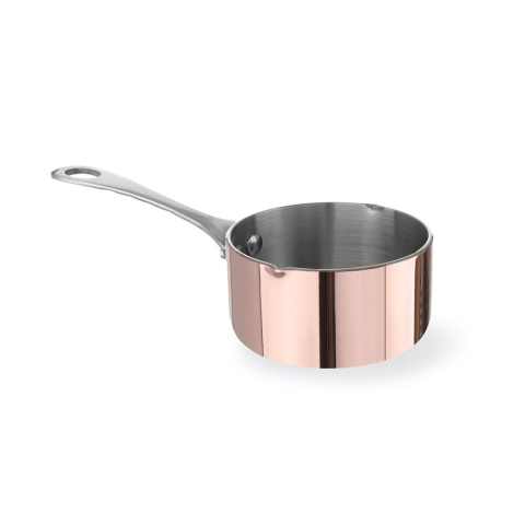 Tálalj szószokat és mártásokat profi módon ezzel a HENDI mini lábassal! A 3 rétegű, vörösréz külsővel rendelkező edény nemcsak elegáns, de a praktikus kiöntőcsőrnek köszönhetően cseppmentes adagolást tesz lehetővé.