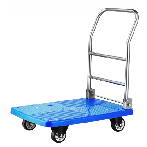 Alacsony mérete ellenére 150 kg súlyt is elbír. Szállításkor kis helyet foglal, összecsukható. 2 forgó kerékkel.
