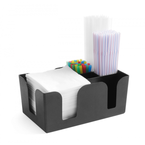 Tartsa kéznél a szívószálakat, szalvétákat, keverőket stb. Ez a kényelmes bárcaddy 6 különféle méretű rekesszel rendelkezik, és sokféle eszközre alkalmas.Szalvétákhoz 130x130 mm.Tételek sokaságához alkalmas.Komp