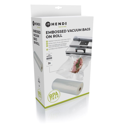 Őrizd meg ételeid frissességét és ízét hosszabb ideig a Hendi bordázott vákuumfólia tekercsekkel! A 2 darabos, egyedileg méretre vágható tekercs tökéletes sous-vide főzéshez és helytakarékos tároláshoz.