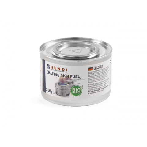 200 grammos paszta chafing edényekhez Égési idő: ≈ 3 óra.Az égőpaszta természetes (bio) etanol és víz keverékéből készül, továbbá sűrítőanyagot hozzáadásával kapja meg a végső szilárd vagy gél állagot.