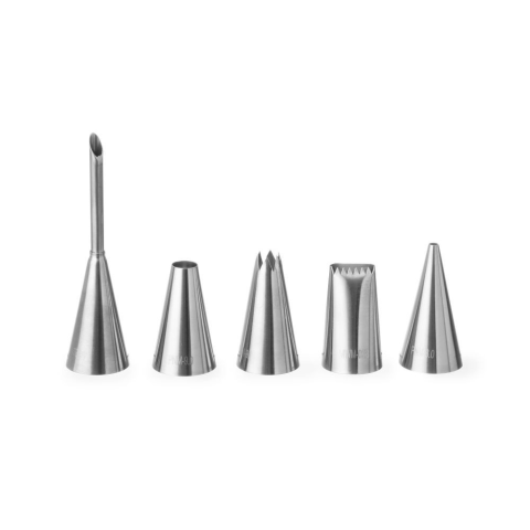 A készlet 5 díszítő csövet tartalmaz: - Töltéshez - Macaron készítéshez - Dekoráláshoz - Kosárfonás technikához - Íráshoz. Az éles széleknek köszönhetően, kifejezetten precízen lehet velük dekorálni.