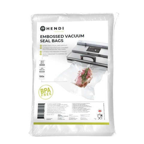 Tartsd ételeidet tovább frissen a Hendi dombornyomott vákuumtasakjaival! A 100 darabos, 200x300 mm-es, BPA-mentes tasakok ideálisak tároláshoz és fagyasztáshoz.