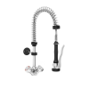 Egycsatlakozós csaptelep. A magas víznyomás nem okoz problémát a zuhanycsőnek. Maximális víz átfolyás: 17 L/perc, 4 bar nyomás. Műanyag zuhanyfej markolat. Állítható oszlop tartó. Falra szerelhető (opcionálisan rövidíthető). Csatlakozó tömlők: 1/2”,
