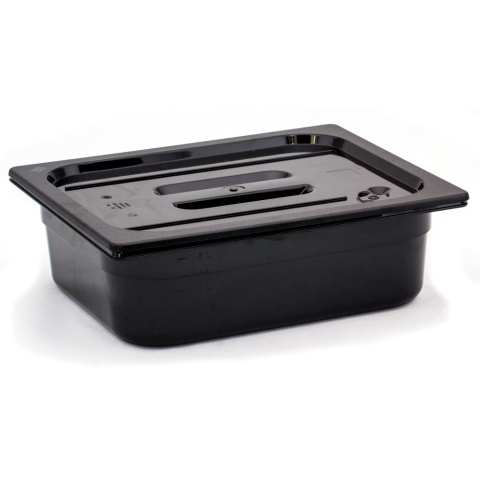 Kiváló minőségű professzionális Gastronorm edények fekete polikarbonátból. Nem szív magába illatokat és ízeket.Hőmérséklet-álló -40 ̊C és 110 ̊C között.