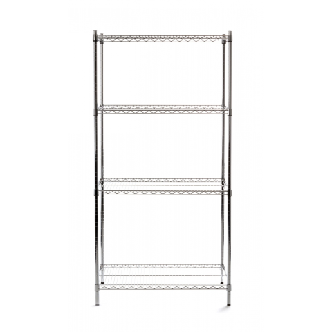 4 állítható polc. Polconkénti maximális terhelés: 125 kg. Állítható talpakkal. Krómozott vas.