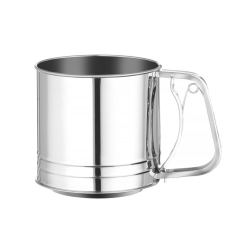 Rozsdamentes acélból készült váz, rozsdamentes acélból készült háló. 2 réteg nagyon finom háló. Nyomófogantyúval (rugós szerkezet). Kapacitás: ~ 550 g. Mosogatógépben tisztítható.