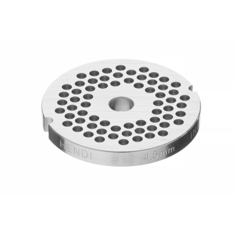Professzionális, rozsdamentes acél tárcsa HENDI Profi Line 12-es húsdarálókhoz. A 4,5 mm-es lyukméret ideális közepesen finom daráláshoz, például vagdalt húsokhoz vagy kolbásztöltelékekhez.
