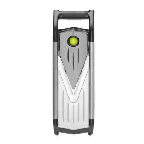 AISI 304 rozsdamentes acélból és ABS-ből készült. A fékbetét vastagsága 1,5 mm, 2,5 mm és 3,5 mm cseréjével változtatható meg. 2 betét julienne-hez: 3,5 mm és 7 mm vastag. Oldja ki a betéteket az egyetlen záró/kioldó gombbal. A visszahúzható lábak csúszás