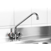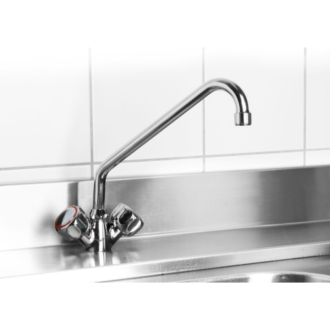 Egyfuratos, külön gomb a hideg és meleg beállításához. Csatlakozótömlők: 1/2”. Szerelőfurat szükséges: ø30 mm. Forgó csőr, 250 mm sugarú.