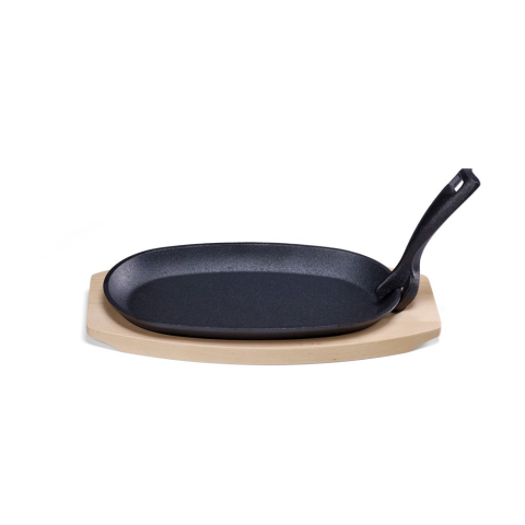 A HENDI öntöttvas szorítófelület fabéléssel és fogóval tökéletes készlet forró ételek, például steakek, curryk, grillezett húsok és katáta felszolgálásához. Kiváló hővezetési és hővisszatartó tulajdonságainak köszönhet