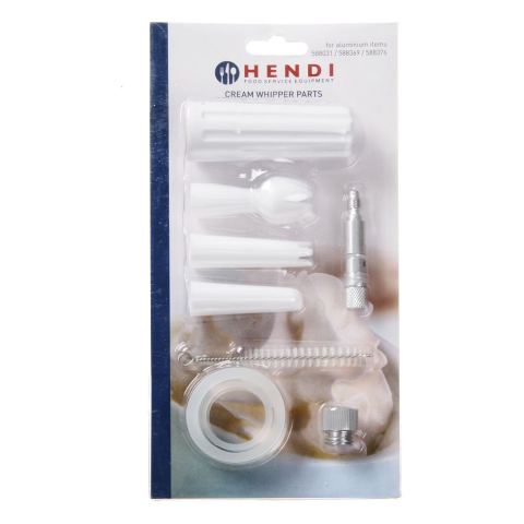 HENDI habszifonokhoz. Tartalmaz: 3 darab formázófejet, patrontartót, tömítéseket, szelepet és tisztítókefét.