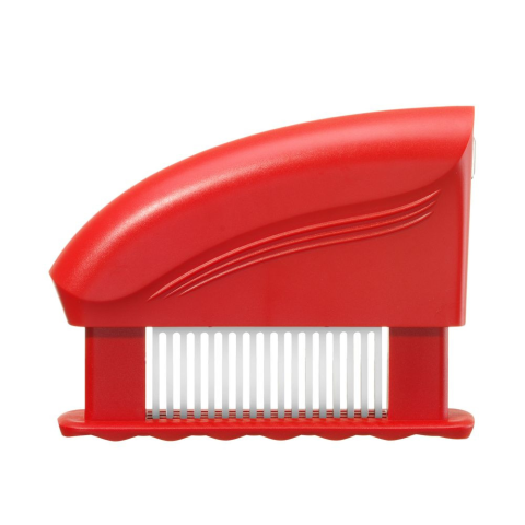 Modern és hatékony eszköz a hús tökéletesítésére, a hézagolt függőleges kések csökkentik a húsrostok hosszát. Lágyítja a hússzövetet, miközben lapítja a húst. Mivel a húsfelszín így jelentősen megnövekedett, ez akár 25%-al felgyorsítja a pácolási folyam