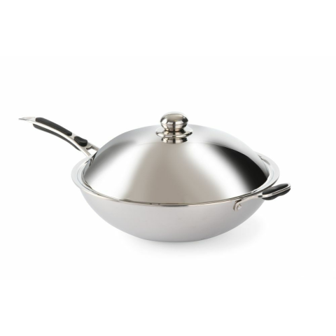 1 kép Hendi Rozsdamentes Acél Wok Üvegfedővel és Puha Nyéllel - 36 cm