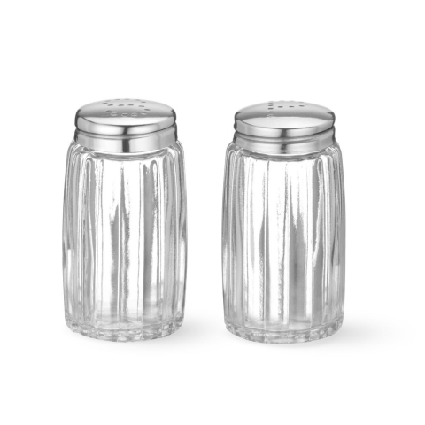 Klasszikus dizájnú só- és borsszóró készlet üvegből, rozsdamentes acél kupakkal. Az 'S' és 'P' alakú lyukaknak köszönhetően a tartalmuk könnyen megkülönböztethető, így ideális választás éttermekbe és otthoni használatra is.