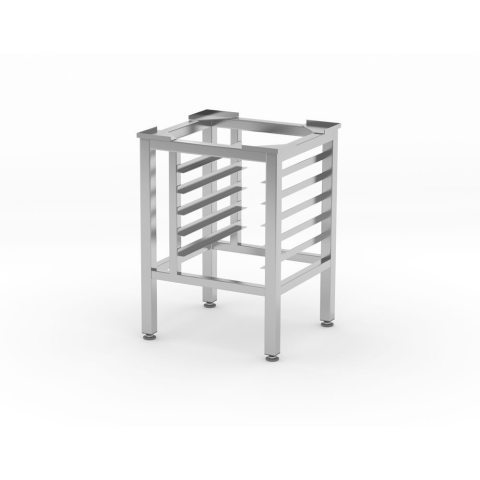 Professzionális, rozsdamentes acél sütőállvány GN 1/1 méretű sütőkhöz. Ergonomikus munkamagasságot biztosít, miközben 5 tálca számára extra tárolóhelyet nyújt.