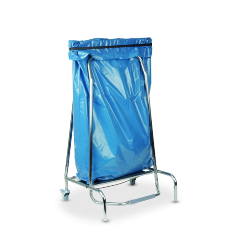 Rozsdamentes acél állvány. Lábfejjel nyitható. 2 fékezhető gurulókerék.