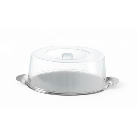 A fedéllel ellátott HENDI kör alakú tálca tökéletes az ételek, sütemények és rágcsálnivalók folyamatos frissen tartására a kirakat során. A fedélnek köszönhetően a termékek jól védettek a kiszáradás ellen.Fogantyús