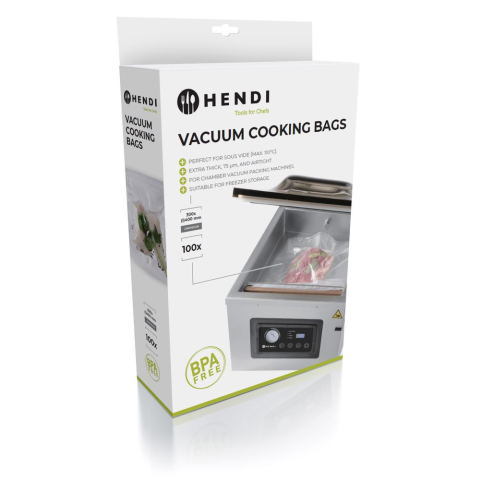 Ezek a professzionális, kétrétegű HENDI vákuumtasakok tökéletesek sous vide főzéshez, fagyasztáshoz és élelmiszerek tárolásához. Kifejezetten kamrás vákuumcsomagoló gépekhez tervezték őket a tökéletes eredmény és az élelmiszerbiztonság érdekében.