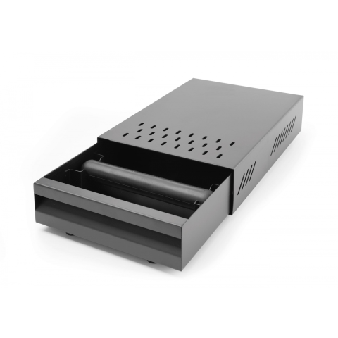 Fiók modell karbontartalmú acélból Kivehető rúddal és lyukacsos tetővel.