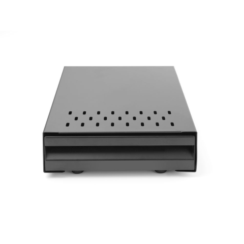 Fiók modell karbontartalmú acélból Kivehető rúddal és lyukacsos tetővel.