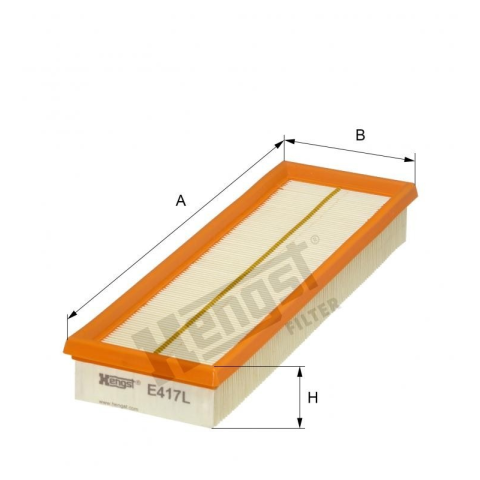 HENGST E417L Szűrő kivitel: Szűrőbetét Hossz [mm]: 314 Szélesség [mm]: 101 Magasság [mm]: 42 EAN: 4030776008661