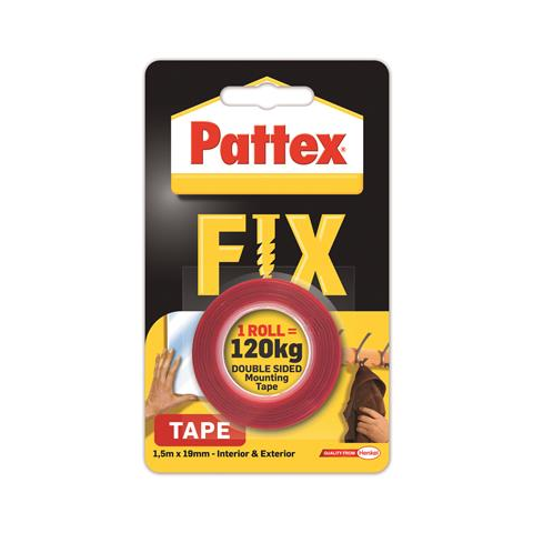 1 kép HENKEL "Pattex Fix 120 kg" Ragasztószalag kétoldalas 19 mm - Piros (1.5m) (1486524)