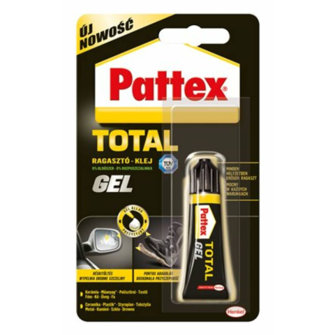 Ragasztó, folyékony, 8 g, HENKEL Pattex Total Gel (IHPTG) -univerzális ragasztó, szinte minden helyzetben erősen ragaszt -rugalmas, rezgésálló és átlátszó -bel- és kültéri felhasználásra -UV- és vízálló -nem tartalmaz oldószert -ragasztható anyag