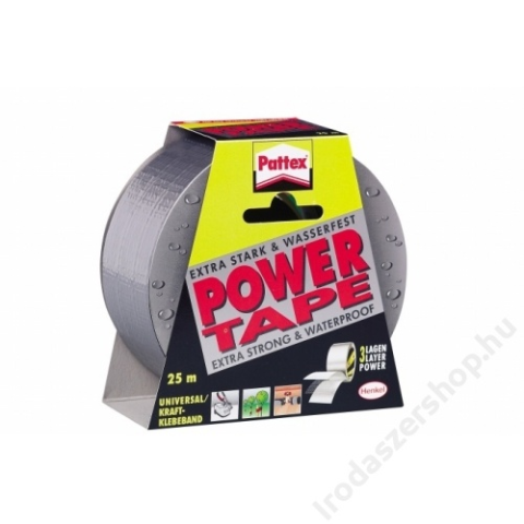 Ragasztószalag, 50 mm x 25 m, HENKEL Pattex Power Tape, ezüst (IHPT25SB) - textilerősítésű polipropilénből készül - könnyedén téphető - hosszanti irányban nagy szakítószilárdságú - vízálló - időjárásálló, kültéri javításokhoz is használható - 4 ba