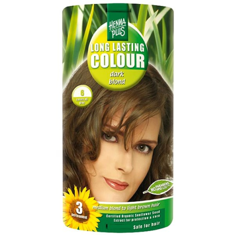 Természetes hajfesték - szőke árnyalat, tartós, krém állagú, ammóniamentes és peroxidmentes összetétel, színélénkítő hatás, minden hajtípusra, űrtartalma 100 ml A Hennaplus tartós SÖTÉTSZŐKE 6 hajfesték gyönyörű, tartós és intenzív színeket, káprázatos csillogást és kiegyensúlyozott ápolást biztosít a hajadnak. A felhasznált növényi kivonatok revitalizálják a