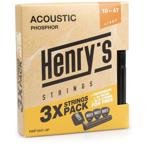 Húr - rendeltetése akusztikus gitár, 6 húr a csomagban, keménység 010 - 047, light, anyaga foszfor bronz, mag anyaga acél, végződés golyó (ball end), általános kivitel, 3 csomag A népszerű Henry’s HAP1047-3 Pack gitárhúr alapvető paraméterei Szerezz be tartalék gitárhúrt a hangszeredhez Ehhez a hangszerhez ajánljuk: akusztikus gitár A gyártáshoz felhasznált anyag foszfor bron