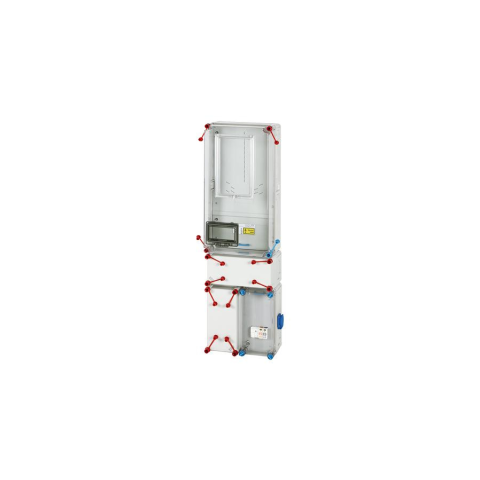 1 és 3 fázisú 1 mérőhelyes fogyasztásmérő szekrény egyedi mindennapszaki méréshez 63 A-ig, felületre szerelt, földkábeles csatlakozásra, kiépített dugaszolóaljzatos csatlakozással | Méret:300x1050x230 mm