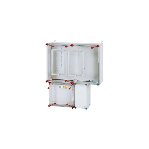 1 és 3 fázisú 2 mérőhelyes fogyasztásmérő szekrény egyedi mindennapszaki (80 A-ig) és vezérelt (32 A-ig) vagy H-tarifás (63 A-ig) méréshez, felületre szerelt | Méret:600x750x270 mm