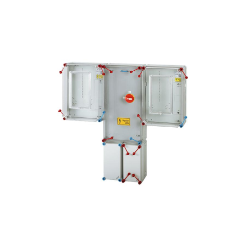 Csoportos mérőhely egyszerűsített engedlyezési eljáráshoz, 2 felhasználási helyre, 1 és 3 fázisú 1 mérőhelyes fogyasztásmérő szekrényekkel mindennapszaki méréshez 63 A-ig, földkábeles csatlakozásra, felületre szerelt kivitelben, túlfeszültség-védelmi eszköz beszerelési lehetőséggel, tűzeseti lekapcsolással | Méret:"E2