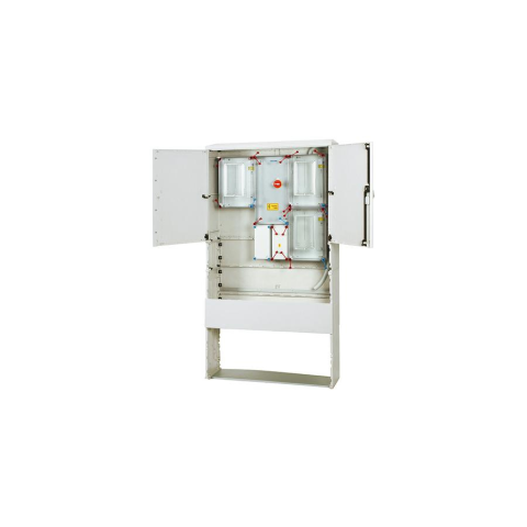 Csoportos mérőhely egyszerűsített engedlyezési eljáráshoz, 3 felhasználási helyre, 1 és 3 fázisú 1 mérőhelyes fogyasztásmérő szekrényekkel mindennapszaki méréshez 63 A-ig, földkábeles csatlakozásra, kültéri alkalmazásra, túlfeszültség-védelmi eszköz beszerelési lehetőséggel, tűzeseti lekapcsolással | Méret:"E2