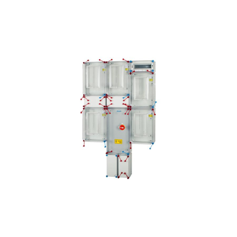 Csoportos mérőhely egyszerűsített engedlyezési eljáráshoz, 5 felhasználási helyre, 1 és 3 fázisú 1 mérőhelyes fogyasztásmérő szekrényekkel mindennapszaki méréshez 63 A-ig, földkábeles csatlakozásra, felületre szerelt kivitelben, túlfeszültség-védelmi eszköz beszerelési lehetőséggel, tűzeseti lekapcsolással | Méret:"E2