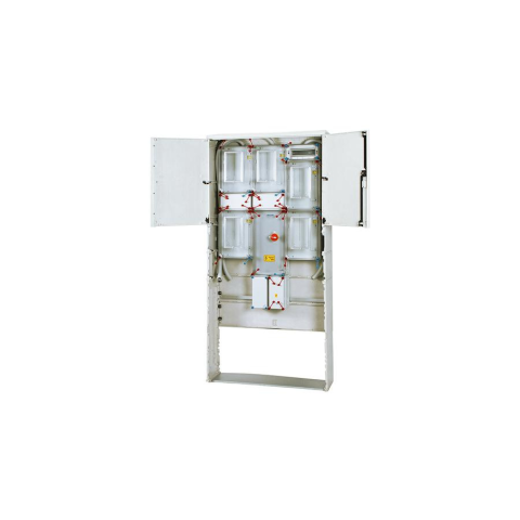 Csoportos mérőhely egyszerűsített engedlyezési eljáráshoz, 5 felhasználási helyre, 1 és 3 fázisú 1 mérőhelyes fogyasztásmérő szekrényekkel mindennapszaki méréshez 63 A-ig, földkábeles csatlakozásra, kültéri alkalmazásra, túlfeszültség-védelmi eszköz beszerelési lehetőséggel, tűzeseti lekapcsolással | Méret:"E2