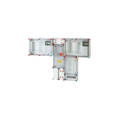 Csoportos mérőhely egyszerűsített engedlyezési eljáráshoz, 4 felhasználási helyre, 1 és 3 fázisú 2 mérőhelyes fogyasztásmérő szekrényekkel mindennapszaki (63 A-ig) és vezérelt (32 A-ig) vagy H-tarifás (63 A-ig) méréshez, földkábeles csatlakozásra, felületre szerelt kivitelben, túlfeszültség-védelmi eszköz beszerelési lehetőséggel, tűzeseti lekapcsolással, közösségi méréssel | Méret:"E2