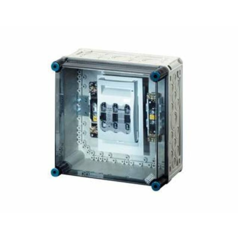 Hensel MI 75250 NH késes, szakaszolható biztosító, elosztó szekrény 1xNH 00, 3P, 300x300mm LEÍRÁS ÉS PARAMÉTEREK PE kapocs Cu (réz) vezetékhez Fedélzárás szerszámmal EN 60 947-3 szerinti NH 00-ás méretű 3 pólusú szakaszolható biztosító PE- és N-k