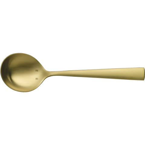 A Hepp Accent kerek leveses kanál szálcsiszolt rozsdamentes acélból, PVD arany bevonattal készült. Ez a 176 mm hosszú étkezési kanál magas minőséget és eleganciát képvisel. Ideális mindennapi használatra és ünnepi alkalmakra is.