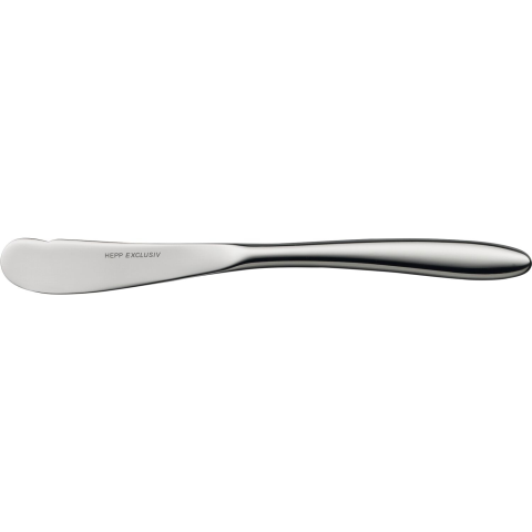 A Hepp Aves vajkés minőségi krómozott acélból készült. Ez a kés 170 mm hosszú, és ideális a vaj tálalásához. A Hepp Aves vajkés teljes kialakítású és sima élű. Mindennapi használatra és különleges alkalmakra egyaránt alkalmas.